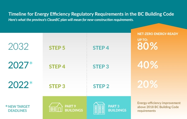 As of May 1, 2023, most new buildings in BC must achieve about 20% greater energy efficiency than before: